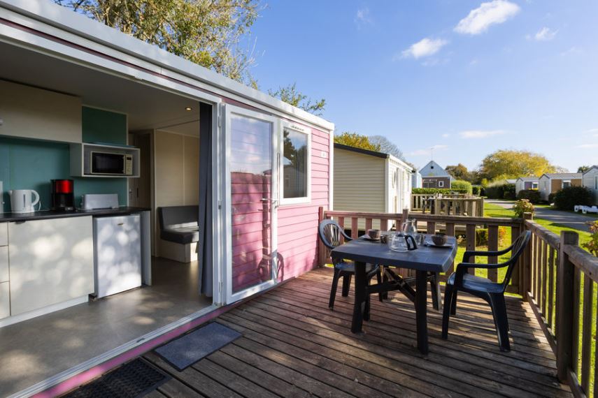 Wohn-/Küchenbereich: ausgestattete Küche (Spüle, Gasherd, Kühlschrank, Kaffeemaschine, Mikrowelle, Geschirr), Heizung