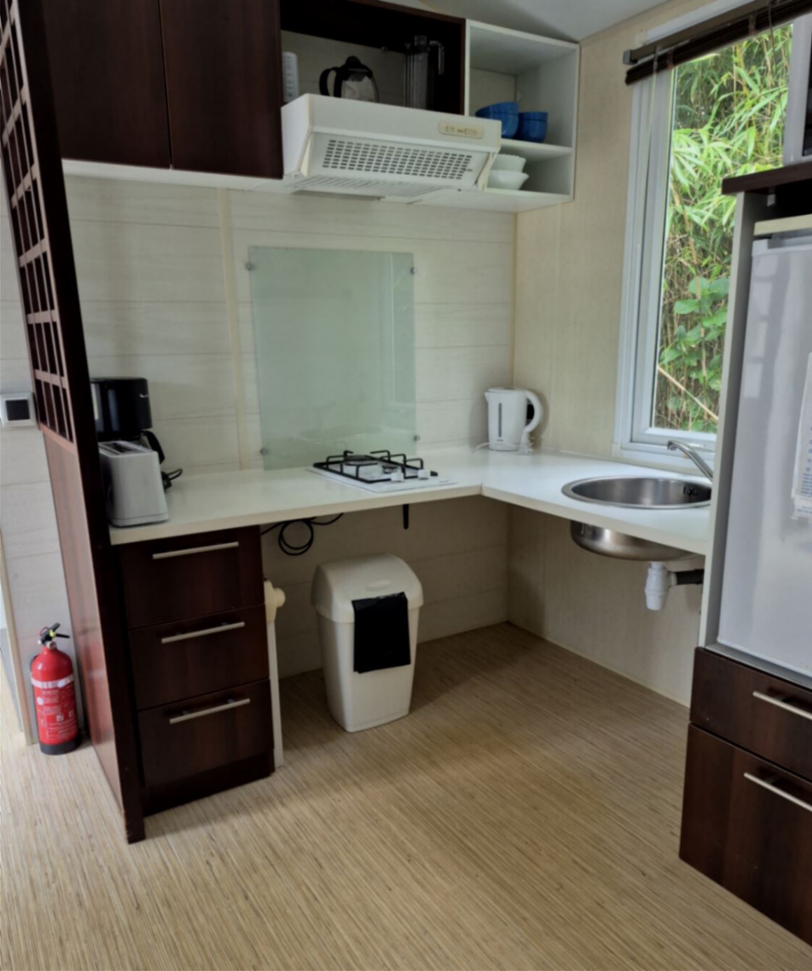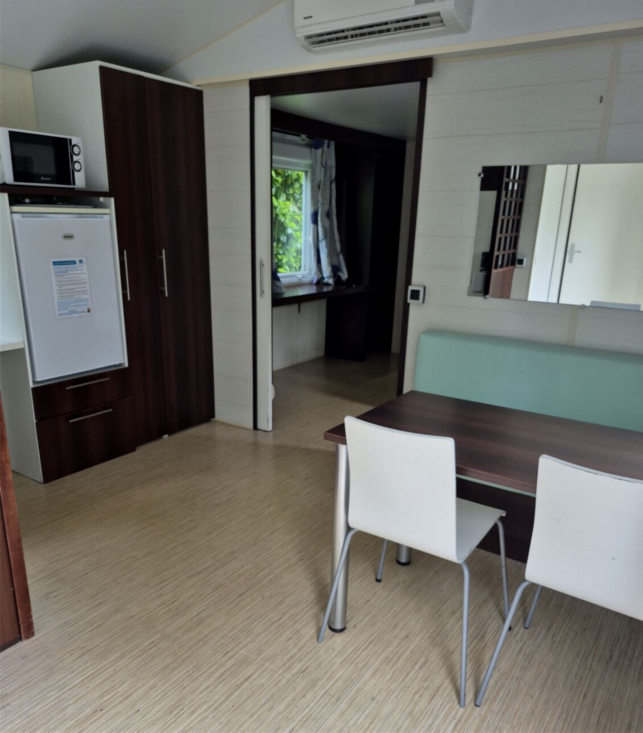 Living room/kitchen area: equipped kitchen (sink, gas hob, refrigerator, coffee maker, microwave, dishes), heating